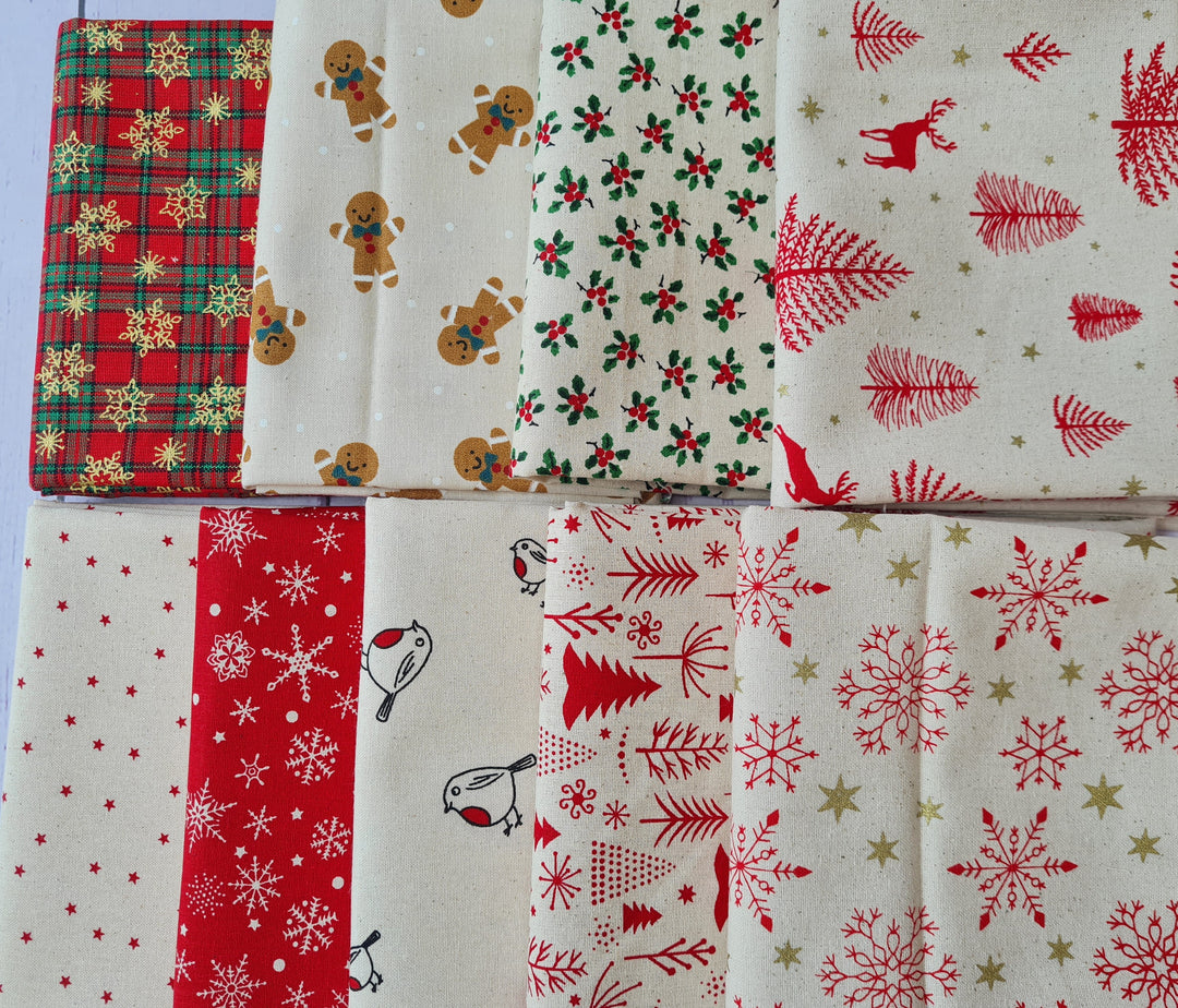 Christmas ribbon by Bertie's Bows. 9-16mm wide 3m/5m - scandi, robins, trees
