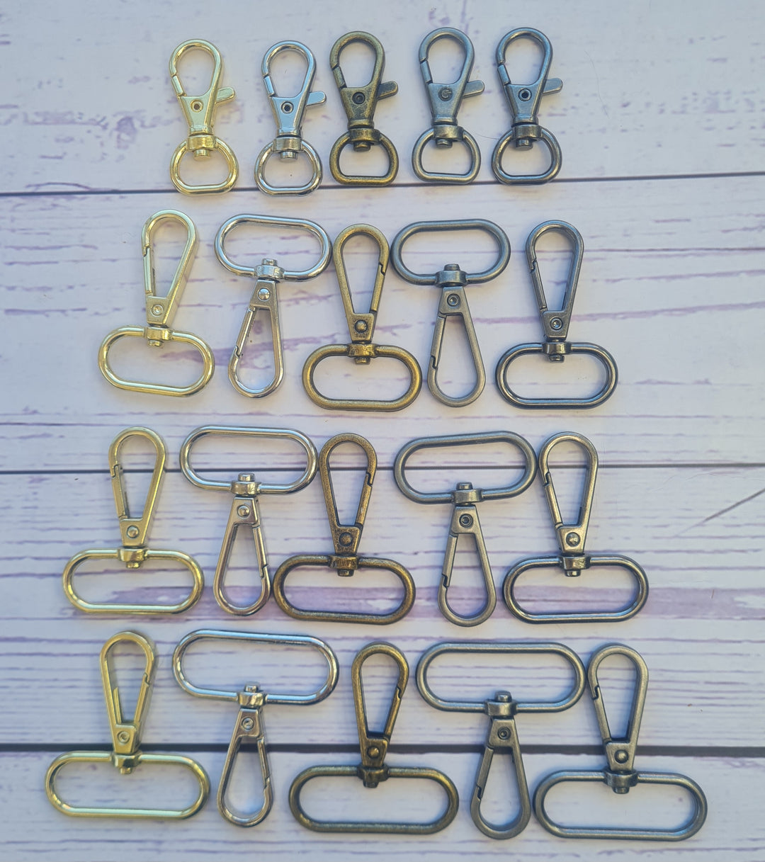 2 x metal snap hooks fastener swivel clips for bag making. 13/25/32/38 mm.