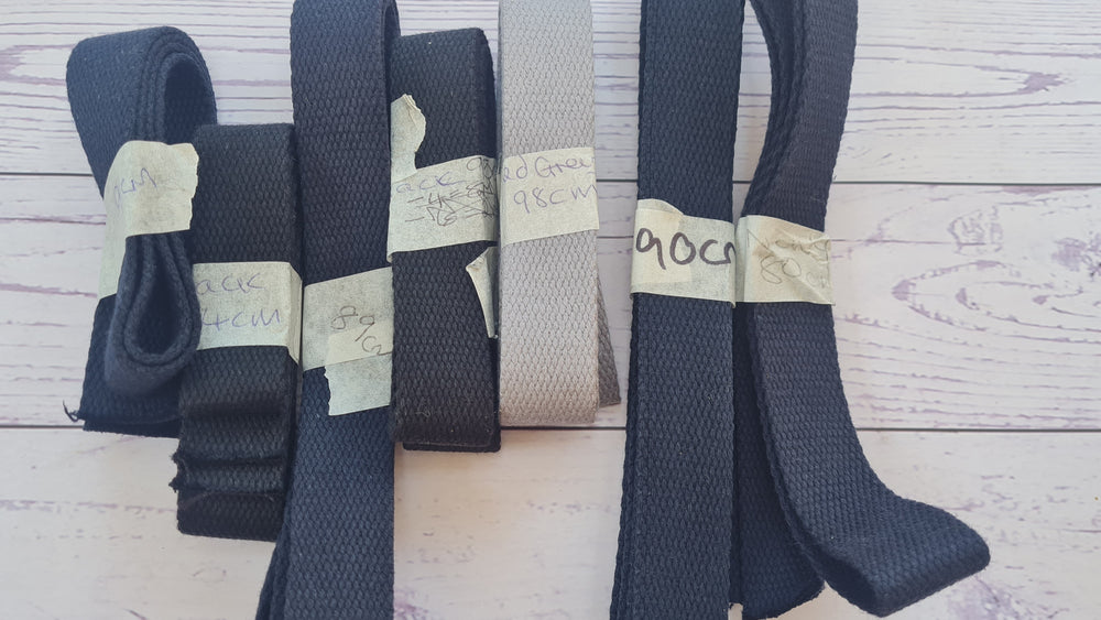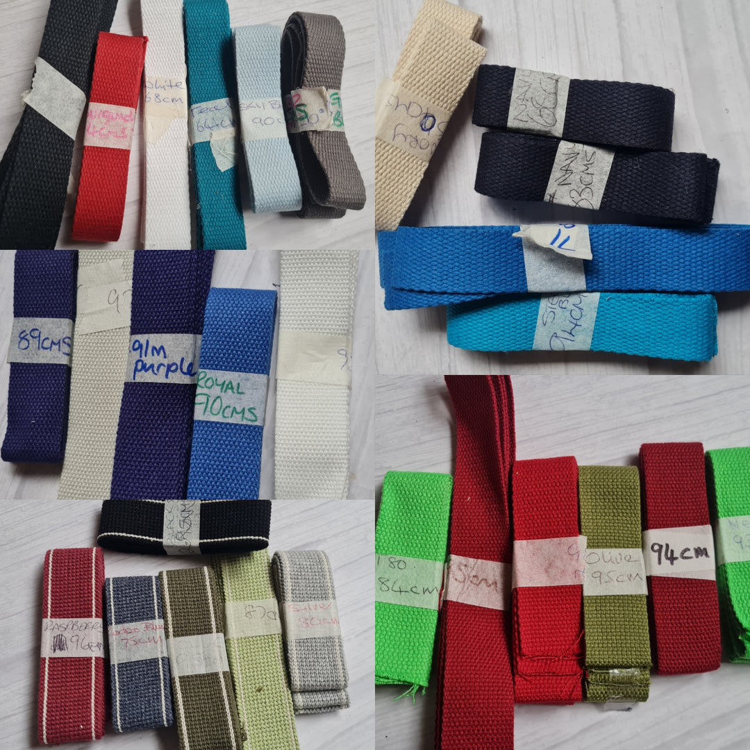 Bulk bag strapping/ webbing scraps: less than 1m, various colours and widths