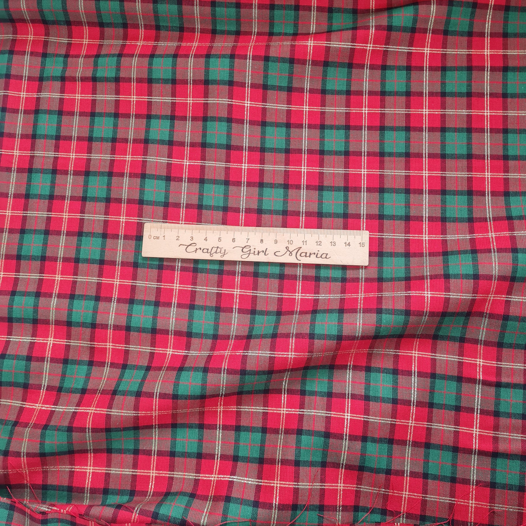 Tartan/Plaid 100% cotton: Red Green Metallic fabric. Sold per 1/2m