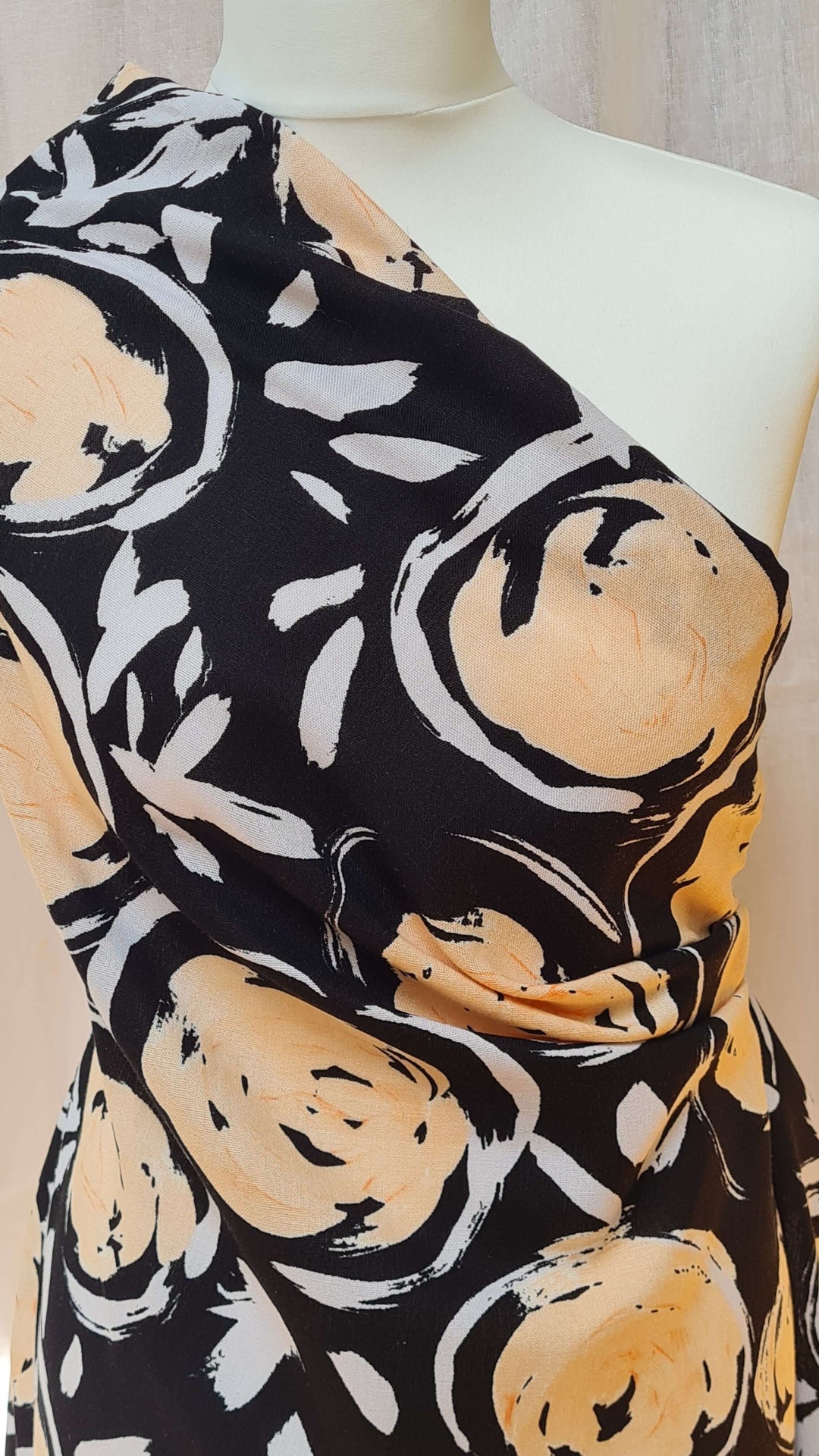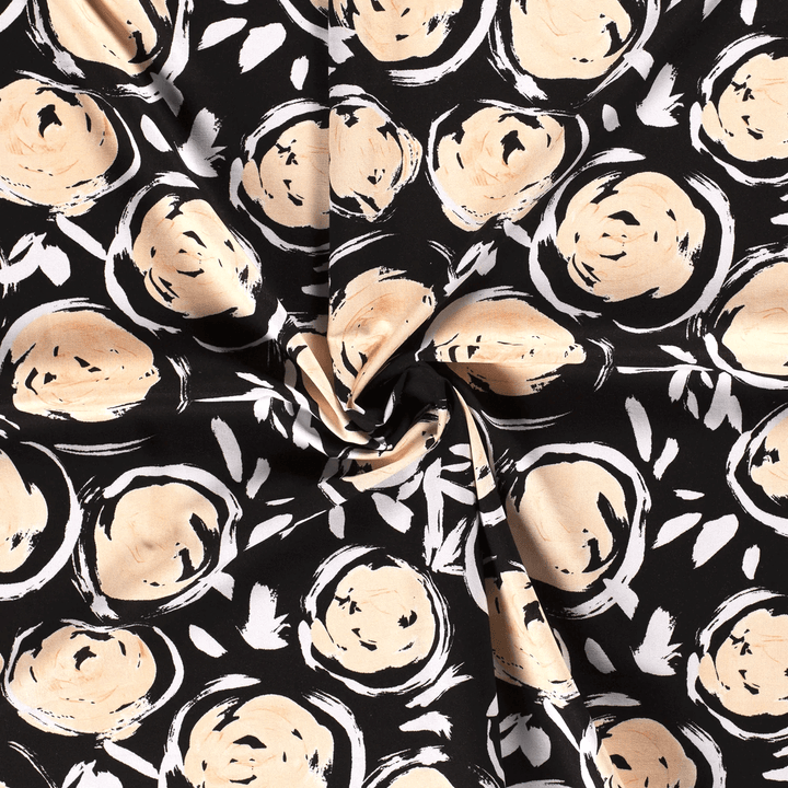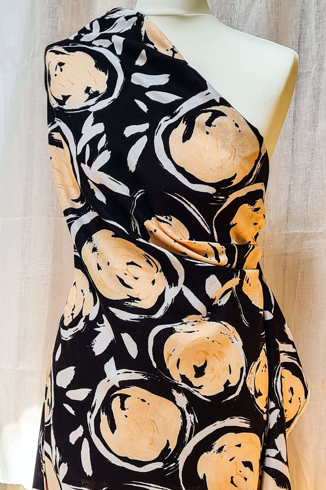 Abstract spot viscose linen woven fabric, by the half metre. Black