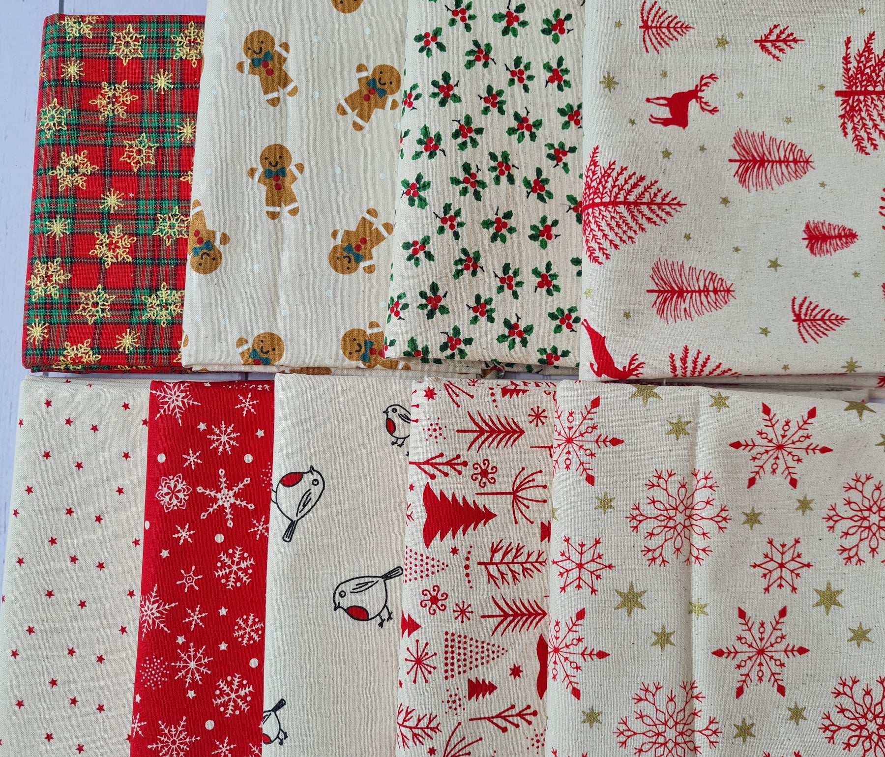 Scandi Metallic Christmas fat quarter bundle/ half metre quilting craft cotton Fabrics. John Louden