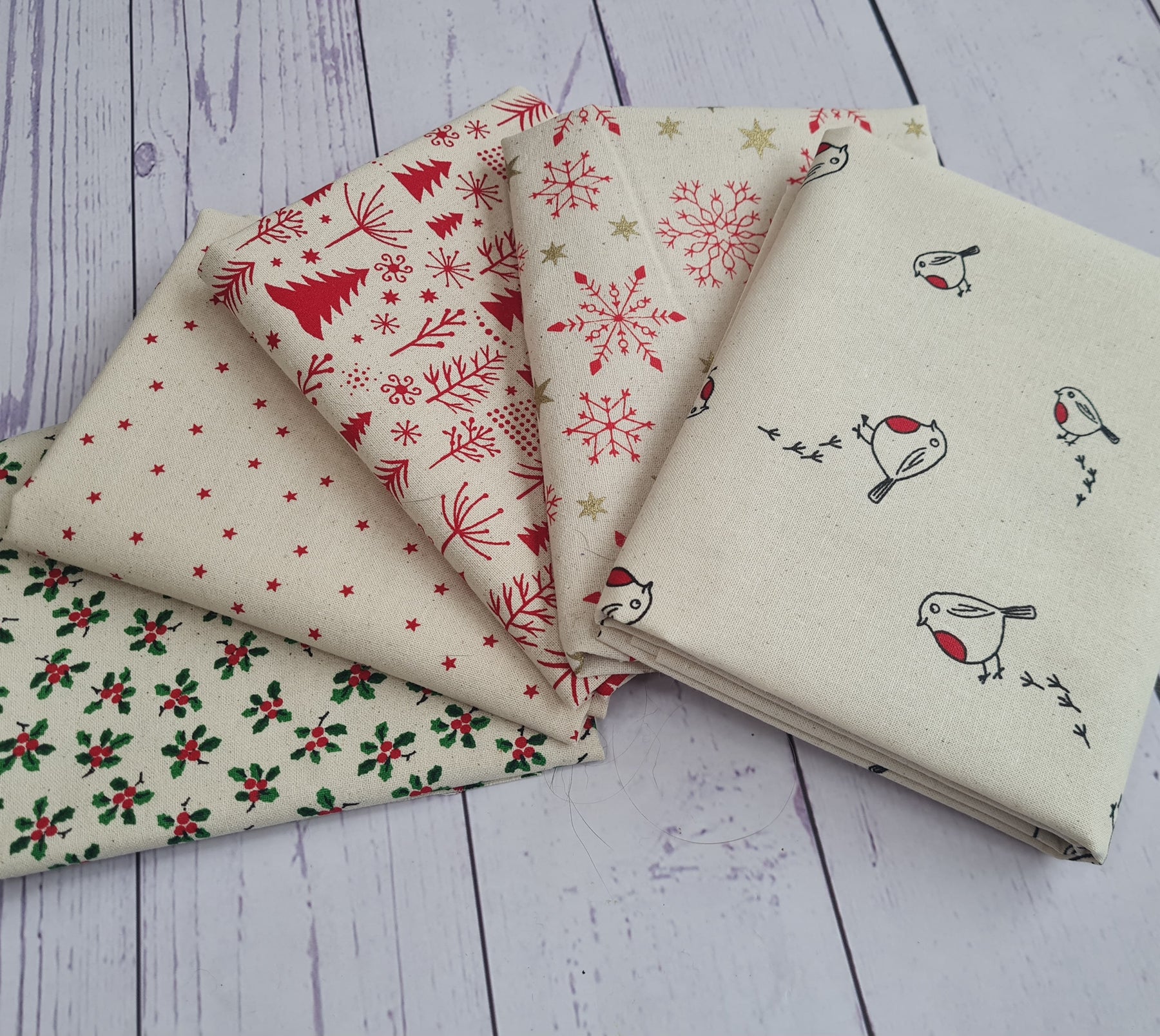 These festive sets of coordinating fabrics are suitable for crafts, quilting and patchwork.