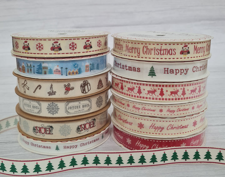 Christmas ribbon by Bertie's Bows. 3m/5 m/20 m/25 m reel.