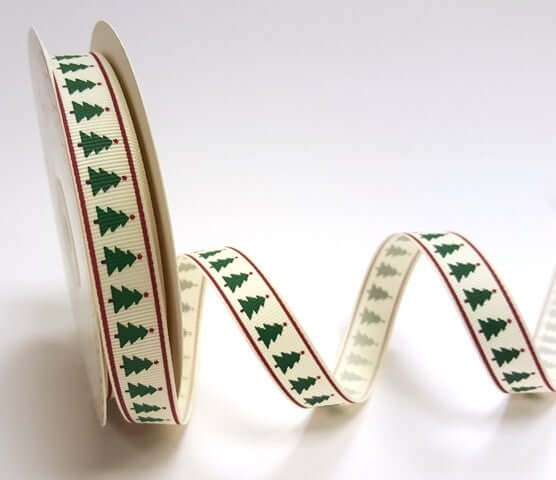 • reindeer and tree 16mm ivory grosgrain 3 m