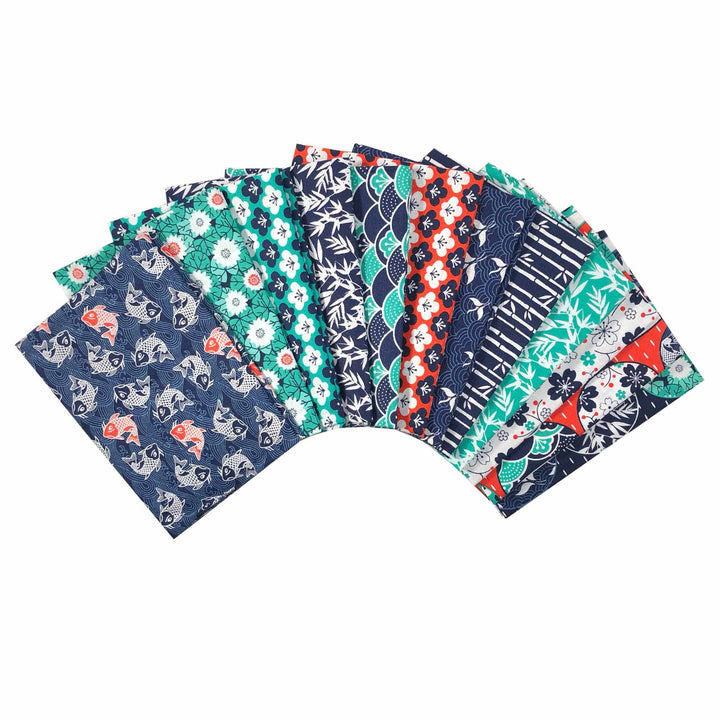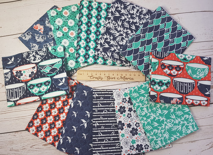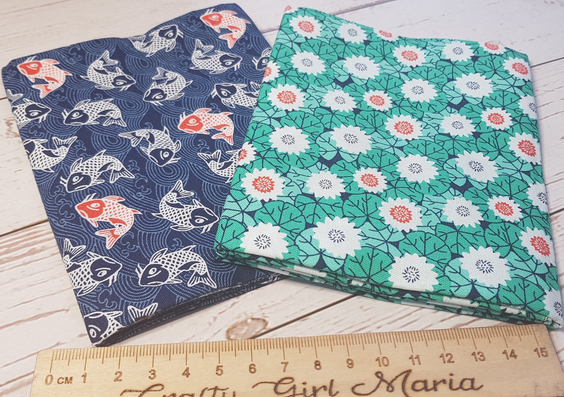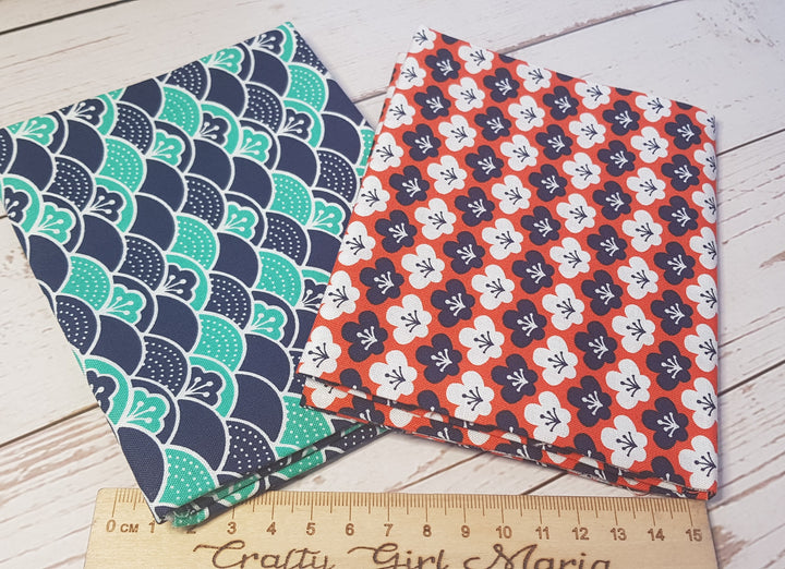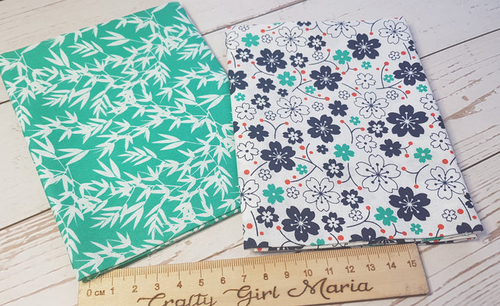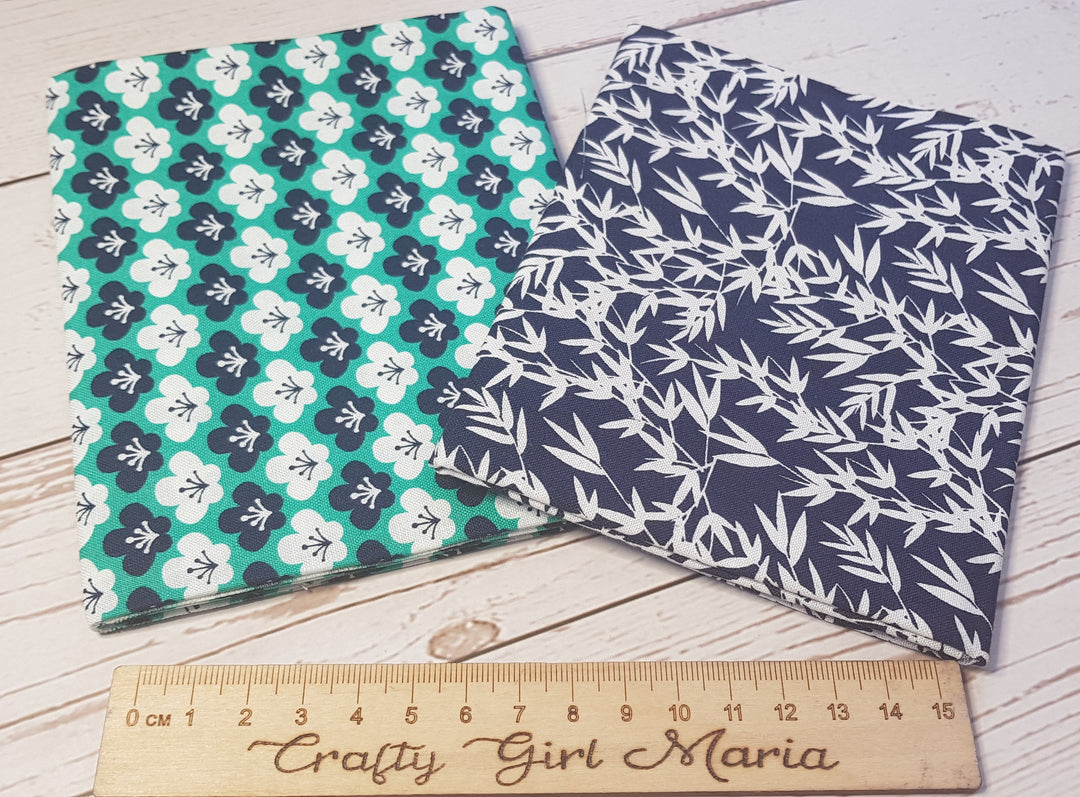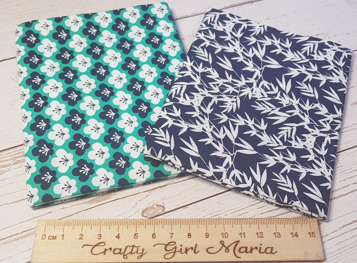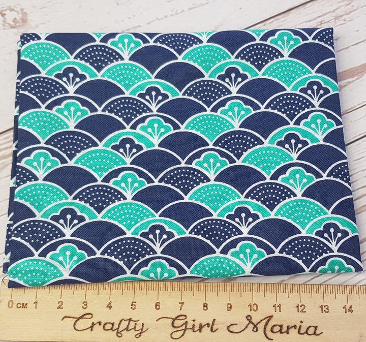 A fat quarter is approx 18" x 22" (45 cm x 55 cm) and is a great cut for quilters! In a beautiful mixture of jade and Navy blue.