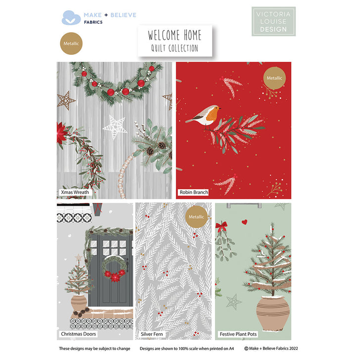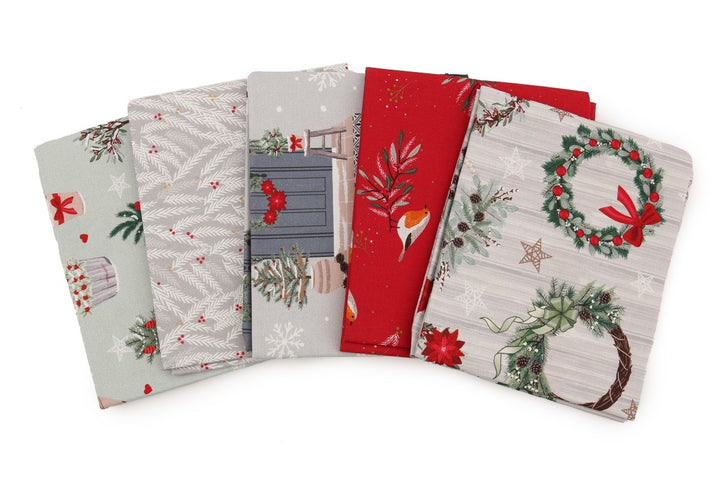 This beautiful set of fabrics feature festive robins, wreaths and christmas trees.