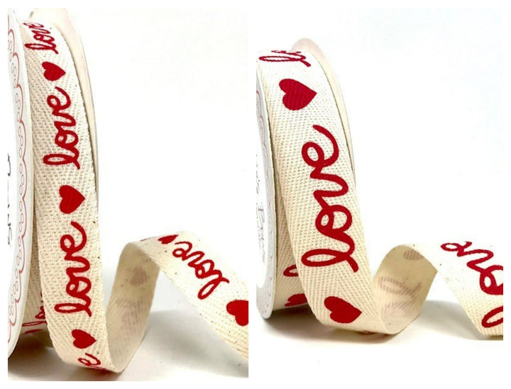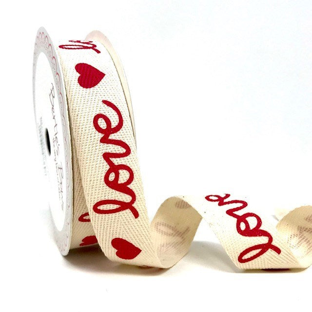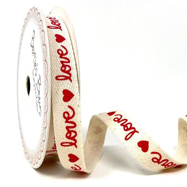 Berties Bows 15mm/25mm Love and Heart Herringbone cotton ribbon x 1m