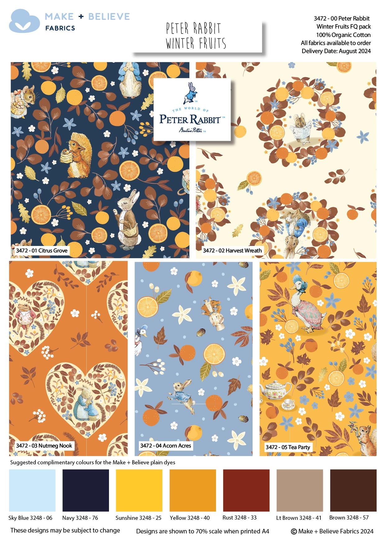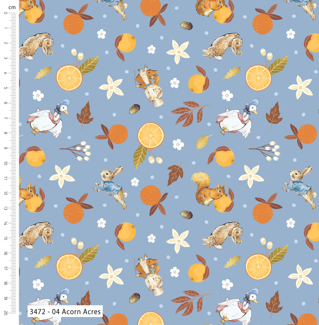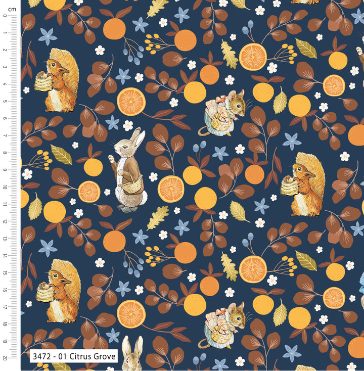 Peter Rabbit winter fruits designs. Ideal for crafting, patchwork and quilting.